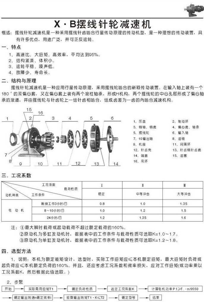 X . B擺線針輪減速機特點結構與原理工況系數選型方法